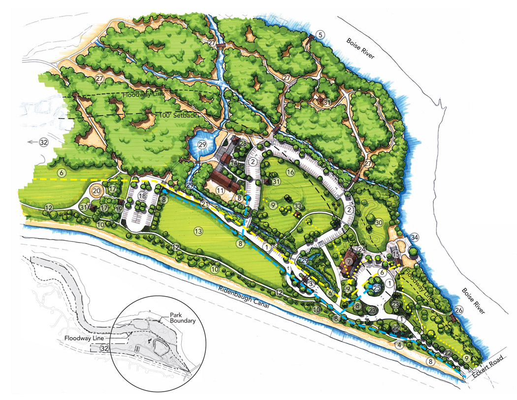 Modus Architecture worked with Ada County to develop a master plan that addresses the changing needs for Barber Park in Boise, Idaho. This small park suffers from heavy summer use by the public that floats the Boise River with rafts and tubes.